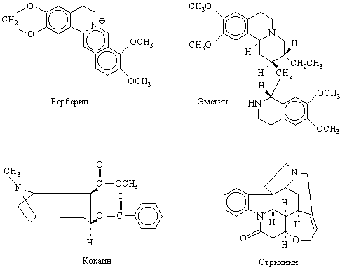 Алкалоиды аконита, аспидоспермы, хинного дерева, спорыньи, эфедры, ибоги, ипекакуаны, люпина, опийного мака, раувольфии, крестовника, картофеля, стрихноса (рвотного ореха) и иохимбе – это классы алкалоидов, члены которых объединены по источнику выделения. Классификация по химическому составу основана на особенностях молекулярного азотно-углеродного скелета, который является одинаковым для членов данной группы алкалоидов. Алкалоиды, составляющие основные структурные классы - пиридиновые (никотин), пиперидиновые (лобелин), тропановые (гиосциамин), хинолиновые (хинин), изохинолиновые (морфин), индольные (псилоцибин, активное начало мексиканских галлюциногенных грибов, резерпин и стрихнин), имидазольные (пилокарпин), стероидные (томатидин из томатов), дитерпеноидные (аконитин), пуриновые (кофеин из чая и кофе, теофиллин из чая и теобромин из чая и какао):