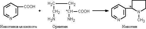 Никотиновая кислота и орнитин в листьях табака превращаются в никотин: