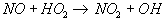 Так же не исключены и другие реакции разложения NO2. Образование NO начинается на расстоянии 1 мм от видимого фронта пламени и достигает максимума во фронте пламени. Отношение NO2/NO уменьшается с повышением температуры. Разложение NO2 происходит за период = 4*10^-3 с на отрезке длинной 1 мм от начальной границы видимого фронта пламени. Зона разложения предпламенной NO2 во фронте пламени совпадает с зоной образования “быстрых” NO, т.е зоной интенсивного нарастания концентраций оксида азота. Эффект разложения NO2 в факеле известен и начинает использовать с целью очистки газов, содержащих высокие концентрации NO2 (отходящие газы химической и других отраслей промышленности). Процесс доокисления NO в NO2 в пламенах молекулярным кислородом имеет высокую энергию активации реакций и большое время реагирования, поэтому существенных количеств NO2 он дать не может. Из двух наиболее вероятных окислителей NO в NO2 (атомарный кислород и пероксидный радикал - HO2 ) практически значение имеет лишь НО2. Доокисление NO в NO2 происходит за счёт реакции с пероксидным радикалом и имеет место при сильном охлаждении пламен избыточным воздухом и водоохлаждаемыми поверхностями нагрева :