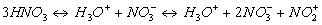 Азотная кислота, не содержащая воды, является безводной. В ней протекают следующие равновесные процессы: