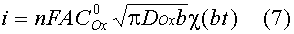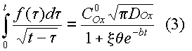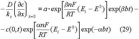 Для описания токов, связанных с электродными реакциями, необходимо решить уравнения (1), (2). Впервые эту задачу решили Шевчик и Рендлс. Рендлс применил для решения графический метод. Аналитический метод, избранный Шевчиком, заключается в применении преобразования Лапласа. После обратного преобразования получается выражение для потока вещества Ox от поверхности электрода.