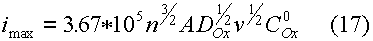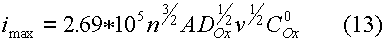Найденная любым из приведенных способов функция определяет форму вольтамперных кривых в случае обратимого электродного процесса. Уравнение тока пика легко получили на основе уравнения (7) и графика функции (8 - 11). Это выражение известно как уравнение Рендлса - Шевчика: