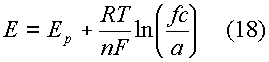 Выражение для потенциала электрода выглядит так: