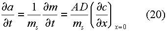 т.е. активность осадка прямо пропорциональна его количеству на электроде. Во втором энергетическом состоянии - макрофаза - активность перестает зависеть от Q и равна активности объемной фазы, т.е. а = а=d/M. Уравнения (1), (2) были решены со следующими граничными условиями: