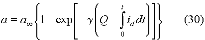 a = m/ms (19) a - активность осадка m - количество металла на электроде, ms - количество металла на единицу активности, f - коэффициент активности, Еp - равновесный потенциал, соответствующий а0 и с0 Активность а является в данном случае функцией времени