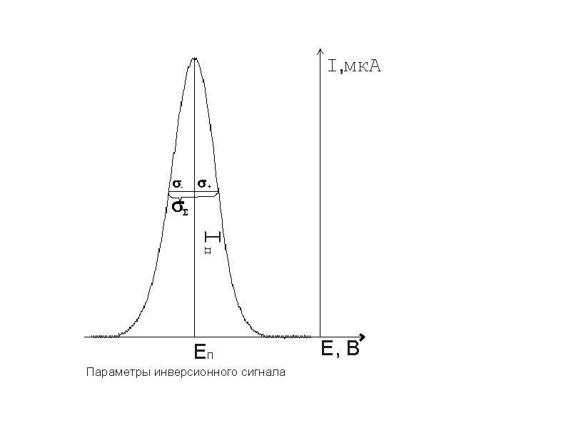 Рис. 5. Приводимые в таблицах параметры пиков (условно). Из приведенных данных видно, что наиболее близко эксперименту по потенциалам соответствуют модели 4, 3.8, 2.4 (табл. 1) . По высотам наиболее близки к экспериментальным данным модели 1, 4 (табл. 1). Исходя из полуширин пиков и уравнений касательных в точках, определяющих полуширину, форму экспериментальной кривой лучше описывают модели 3.8, 4 (табл. 2, 3). Из всего вышесказанного следует, что наиболее точно эксперимент описывают модели 1, 2.4, 3.8, 4, представленные на рис. 6-8. Соответствующие параметры пиков представлены в табл. 4.