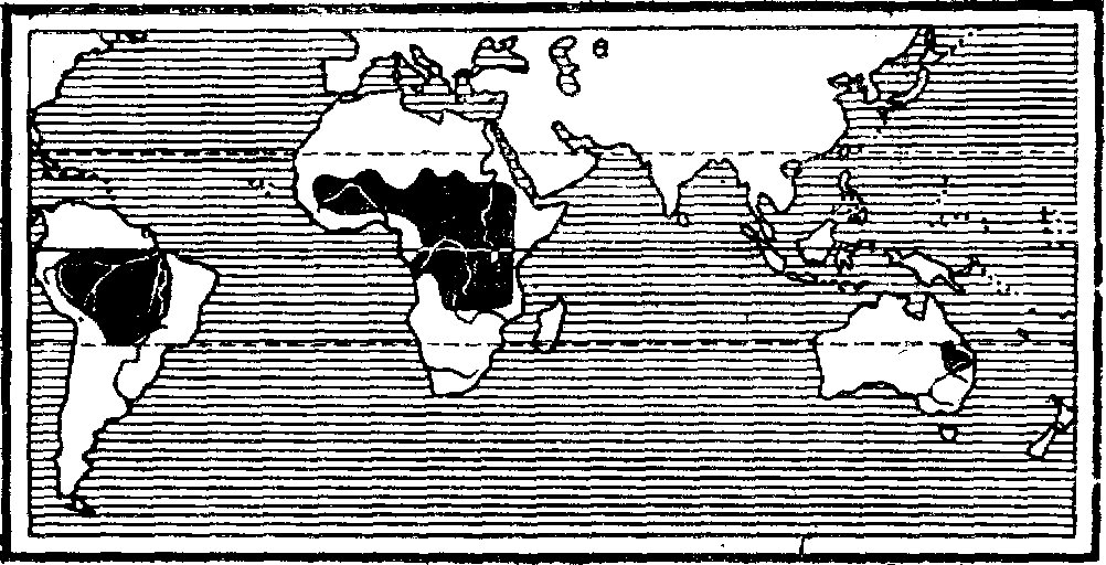 СЕМЕЙСТВО ЧЕШУЙЧАТНИКОВЫЕ, ИЛИ ДВУЛЕГОЧНИКОВЫЕ (LEPIDOSIRENIDAE) Чешуйчатниковые характеризуются удлиненным угреобразным телом, которое вплоть до брюшных плавников округло в поперечном сечении. Они имеют парное легкое; мелкая циклоидная чешуя, покрывающая их тело и отчасти голову, глубоко спрятана под кожу, а их гибкие парные плавники имеют жгутовидную форму. Наиболее характерна для рыб этого семейства способность в течение всей своей жизни существовать во временных водоемах, нередко полностью пересыхающих в засушливый сезон, дл-ящийся подчас до 9 месяцев. На все это время они впадают в спячку, зарывшись в грунт и полностью переходя на дыхание атмосферным воздухом. В этом семействе насчитывается 5 видов: 4 вида, обитающих в тропической Африке, принадлежат к роду протоптеров (Protopterus), а южноамериканский род чешуйчатников (Lepidosiren) представлен всего одним видом. Близость между южноамериканским и африканским представителями пресноводных двоякодышащих рыб является веским доводом в пользу существования сухопутной связи между Африкой и Южной Америкой в далеком прошлом. Пожалуй, самое существенное отличие протоптеров от чешуйчатников сводится к тому, что у первых имеется 6 жаберных дуг и 5 жаберных ще- лей, в то время как у вторых — всего 5 жаберных дуг и 4 жаберные щели. Иногда их рассматривают как представителей особых семейств (Lepidosirenidae и Protopteridae). Четыре вида рода протоптеры (Protopterus) внешне очень сходны и отличаются друг от друга по своей окраске, по количеству ребер, по степени развития и ширине кожной оторочки парных плавников и другим признакам. Наиболее крупный вид — большой протоптер (Protopterus aethiopicus, местное название “мамба”) — достигает в длину свыше 2 м, окрашен в голубовато-серые тона. с многочисленными мелкими темными пятнами, иногда образующими “мраморный” узор (рис. 48). Этот вид обитает от Восточного Судана до озера Танганьика. Малый протоптер (Р. amphibius), по-видимому,самый мелкий вид, не превышающий в длину 30 см. Обитает в дельте Замбези и в реках к юго-востоку от озера Рудольфа. Для молоди этого вида характерно наличие трех пар наружных жабр, которые сохраняются в течение очень длительного времени. Темный протоптер (Р. do! lot), обитающий только в бассейне Конго, характеризуется наиболее удлиненным телом и очень темной окраской. Достигает в длину 85 см. Внешне этот вид в наибольшей степени сходен с южноамериканским чешуйчатником. Бурый протоптер (Р. annectens), достигающий в длину 90 см,—обычная двоякодышащая рыба Западной Африки. Он населяет бассейны рек Сенегала, Гамбии, Нигера и Замбези, озеро Чад и район Катанги. Спина у этого вида обычно бурозеленая, бока светлее, брюхо грязно-белое. Наиболее хорошо изучена биология именно этого вида. Для климата тропической Африки характерна резкая смена дождливого и засушливого сезонов. Дождливый сезон начинается в мае—июле и длится 2—3 месяца, а всю ос1альную часть года длится засушливый период. В период бурных тропических лнкнрй реки взбухают и разливаются, заэопляя огромные площади низин, в которых вода держится 3—5 месяцев в юду. В эти временные водоемы, где в изобилии имеется легко доступная пища, из рек устремляется масса рыб, но по мере их усыхания, спасаясь от гибели, рыбы возвращаются в реки до того, как обмелеют протоки. Совершенно иначе ведет себя протоптер. Оказывается,что в реках он, как 