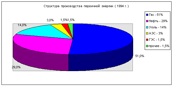 Основные месторождения. Объёмы запасов. Газовая промышленность является одной из составных частей топливно-энергетического комплекса, в состав которого входят предприятия по добыче и переработке всех видов топлива (топливная промышленность), производству электроэнергии и её транспортировке (электроэнергетика). Развитие топливной промышленности, казалось бы, обусловлено в первую очередь имеющимися запасами различных видов топлива: ведь если их нет, то не может быть их добычи. Однако действительность сложнее. Огромным размерам территории России мы обязаны тем, что в нашей стране имеются большие запасы топлива, причём всех его видов. Поэтому решающий критерий разработки месторождений - экономический. Надо решить, какое именно из имеющихся месторождений целесообразно и наиболее эффективно разрабатывать. Роль отдельных видов топлива в экономике России менялась. В начале века большое значение имели дрова. Затем они постепенно начали вытесняться углём ( к 50-м гг. угольная промышленность давала более половины всего топлива ). А позже начался рост нефти и газа. В 1994 г. общее производство первичной энергии в России составило 1410 млн. т условного топлива. Доля газа, как самого дешёвого топлива, в последние годы быстро росла ( за счёт сокращения добычи нефти и угля ).